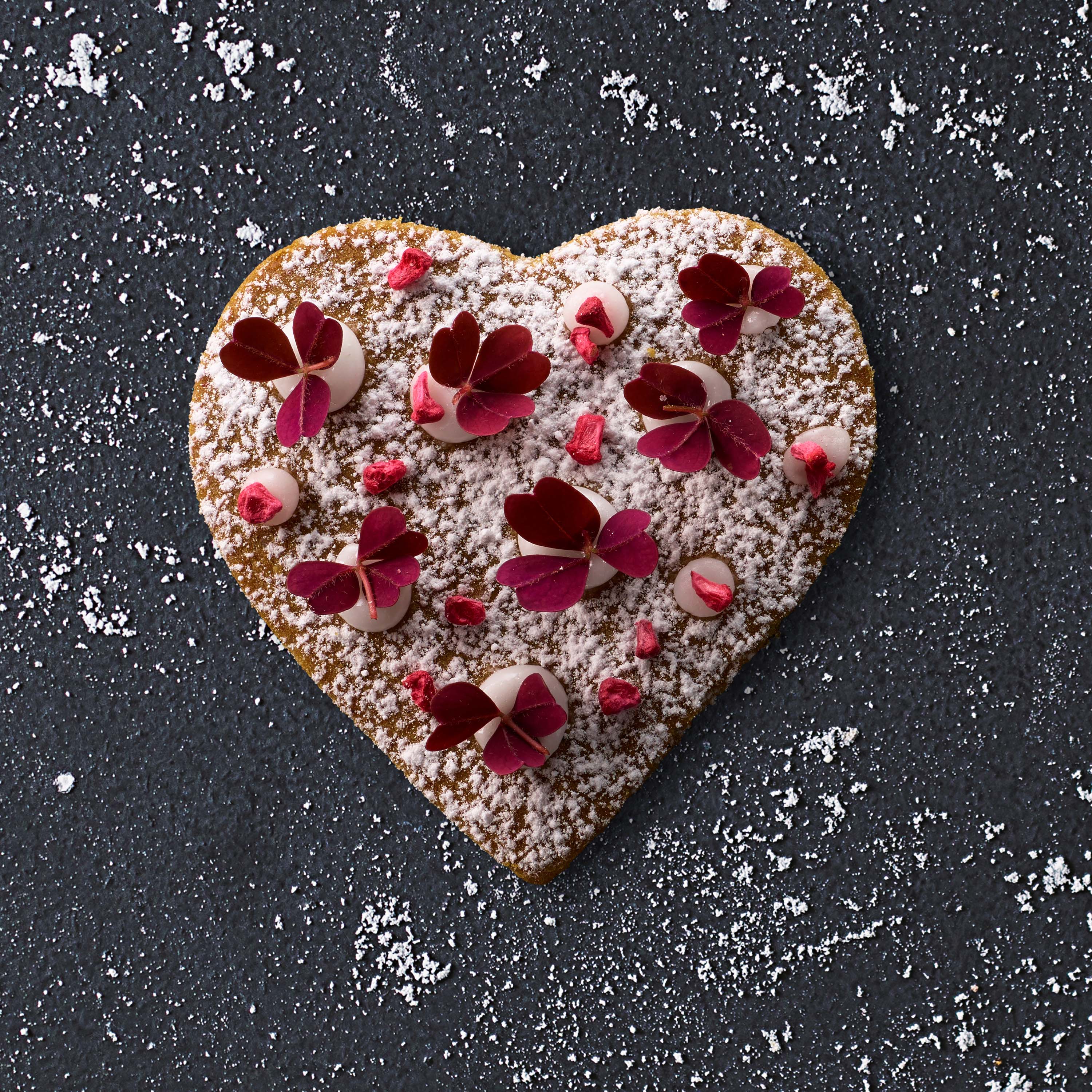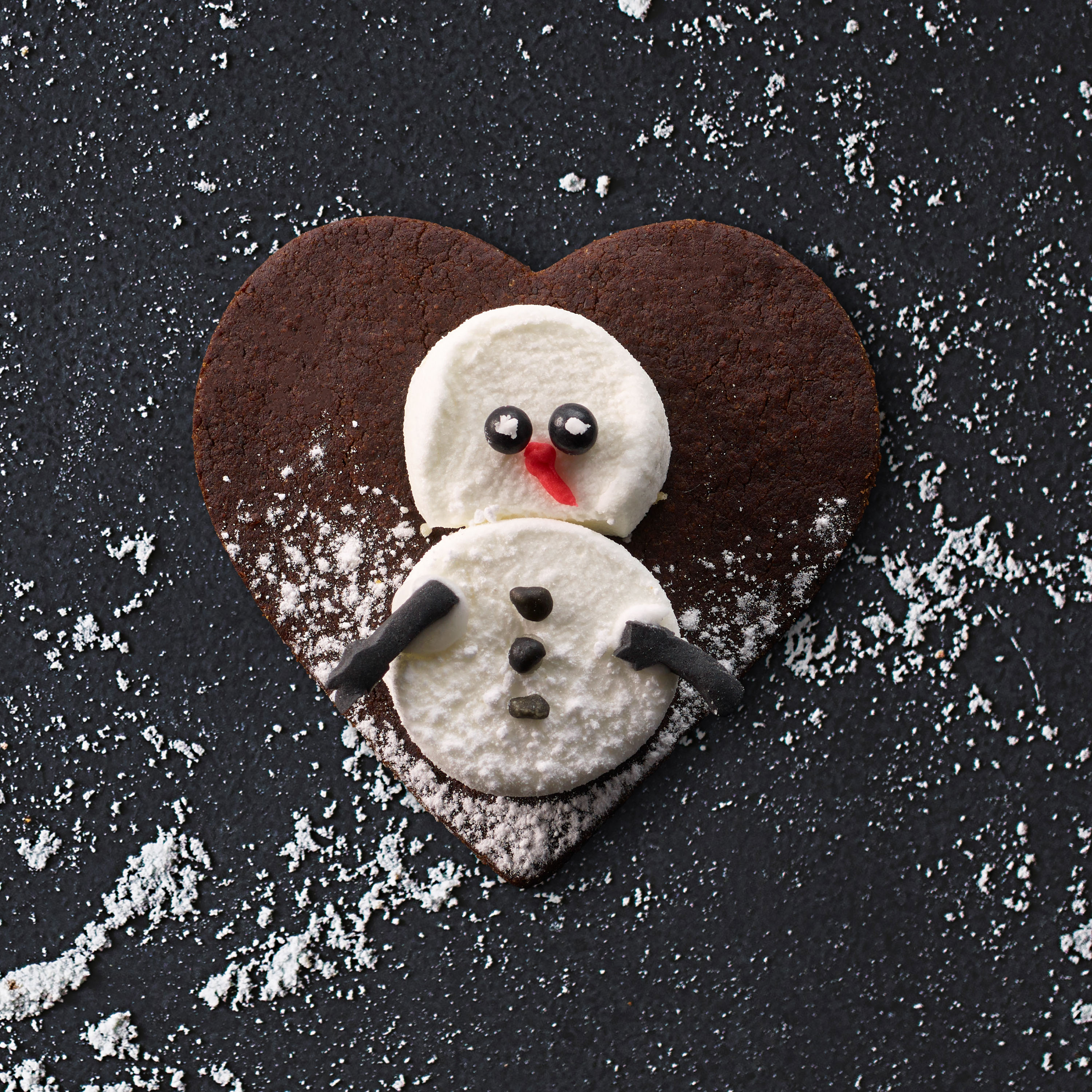 Rulla sedan resten av den ljusa och mörka degen till tjockare längder som du delar på hälften. Lägg längderna på varsin sida av stubben, tryck till och forma kakdegen så att det ser ut som ett hjärta.